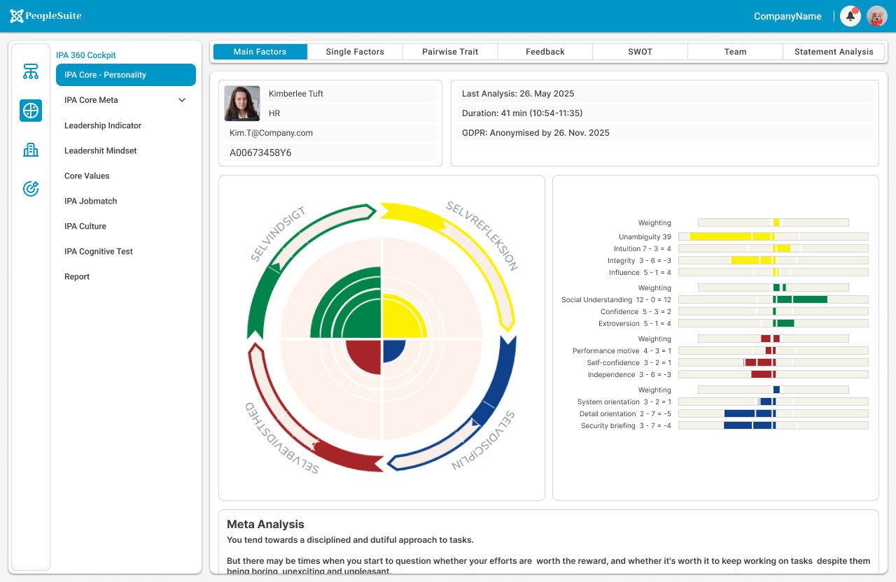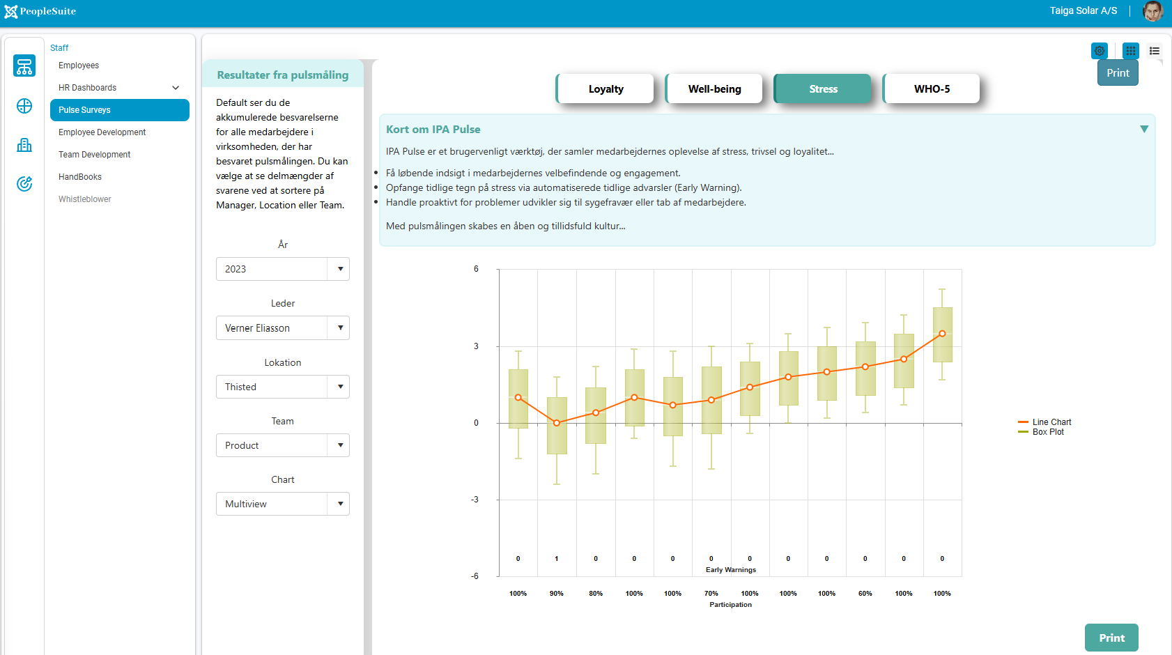 - Trivsel – få indsigt i medarbejdernes oplevelse og arbejdsglæde, så I kan handle proaktivt.